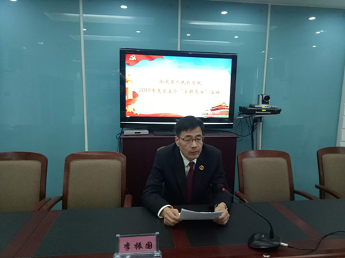 2019年5月9日南皮县人民检察院机关党支部组织全体党员开展第五个“主题党日”活动,会议以“续五四精神、扬爱国情怀”为主题开展。会上李振国书记带领大家学习了习近平总书记在纪念五四运动100周年大会上的讲话,并一起观看了《青年榜样习近平》、《初心●梁家河篇》等影片。